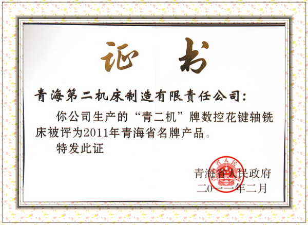 青海省名牌產(chǎn)品證書
